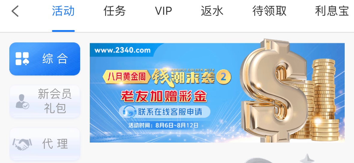 在8月1号之前注册并历史存款过100的兄弟6号-12号联系客服领取8彩金,彩金一倍流水