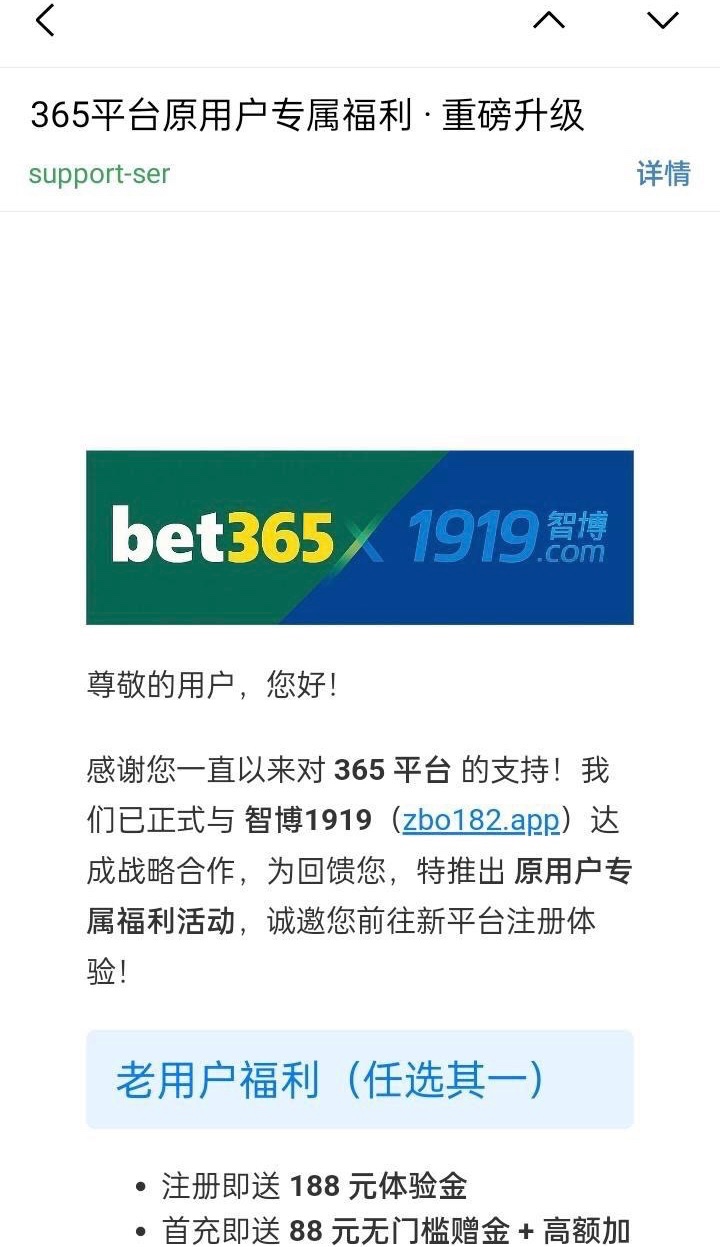 邮箱特邀原365与智博合并可以先看看自己邮箱有没有收到此邮件或是原先的365老用户注册智博联系客服申请彩金,3倍流水