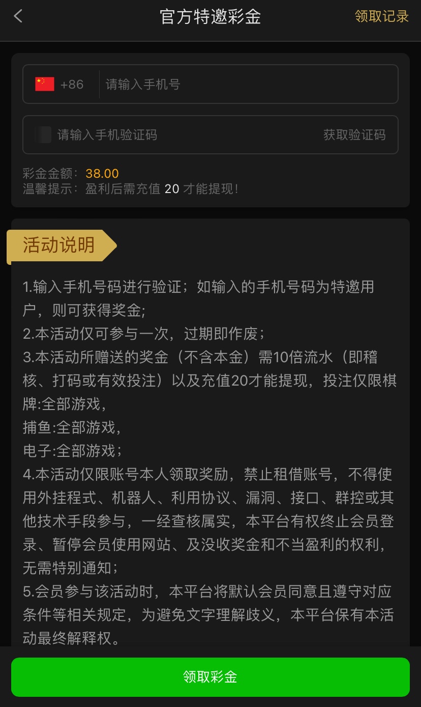 感兴趣碰瓷的兄弟可以去试试,打出来需要充值20才能提现,黑款自理!